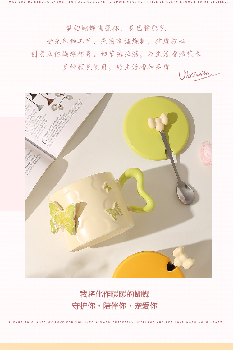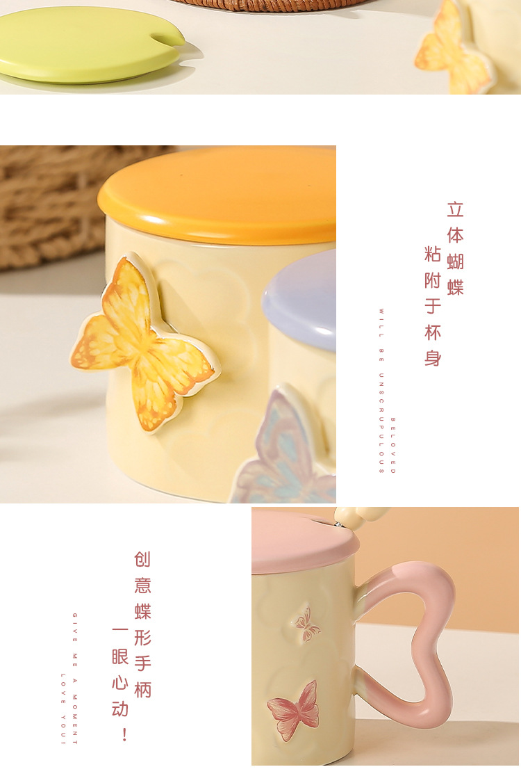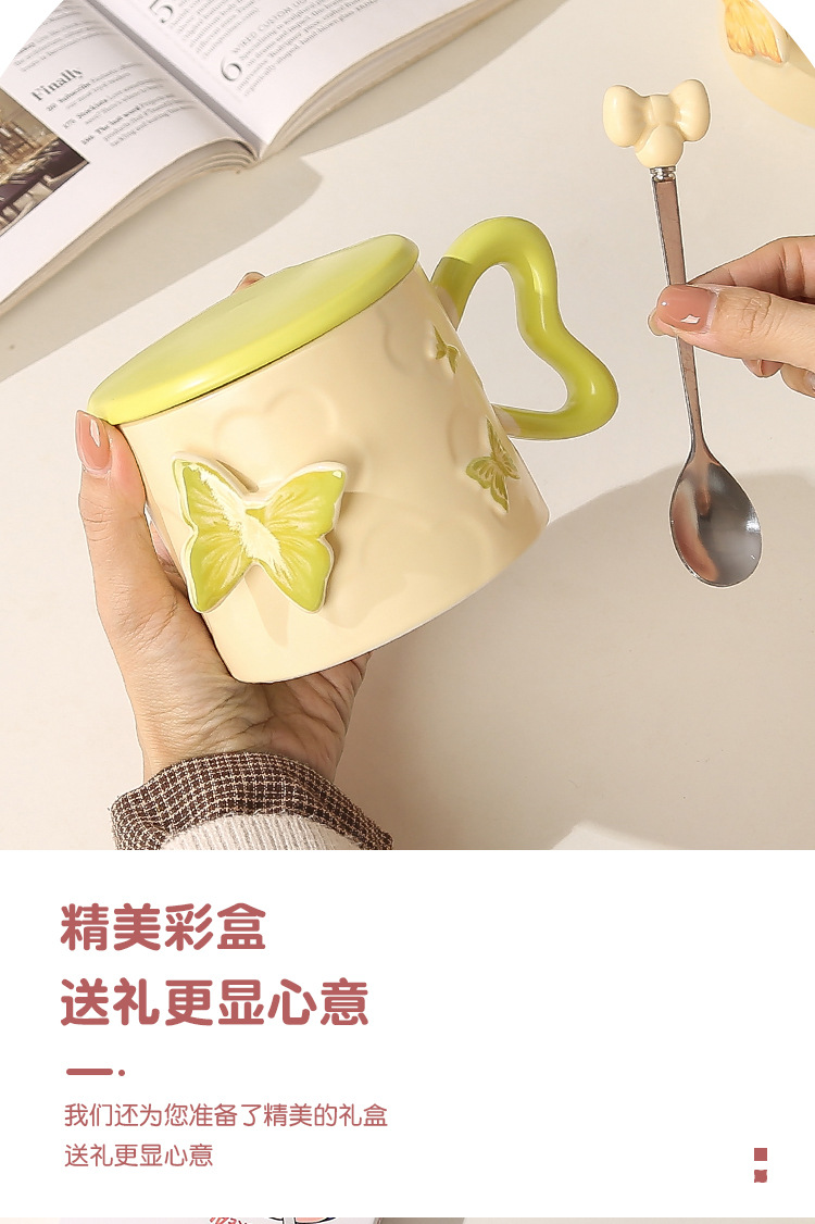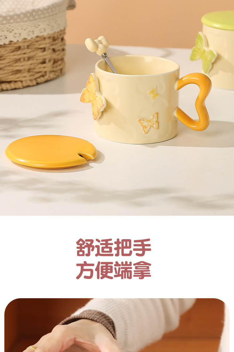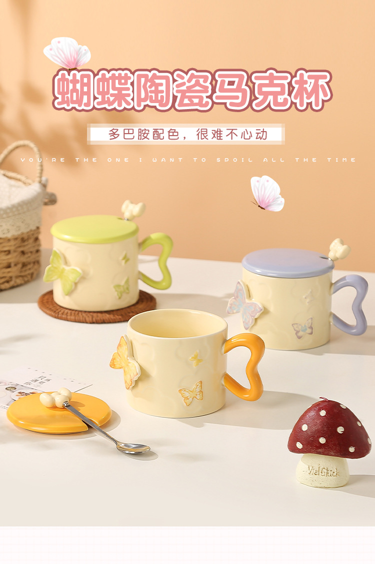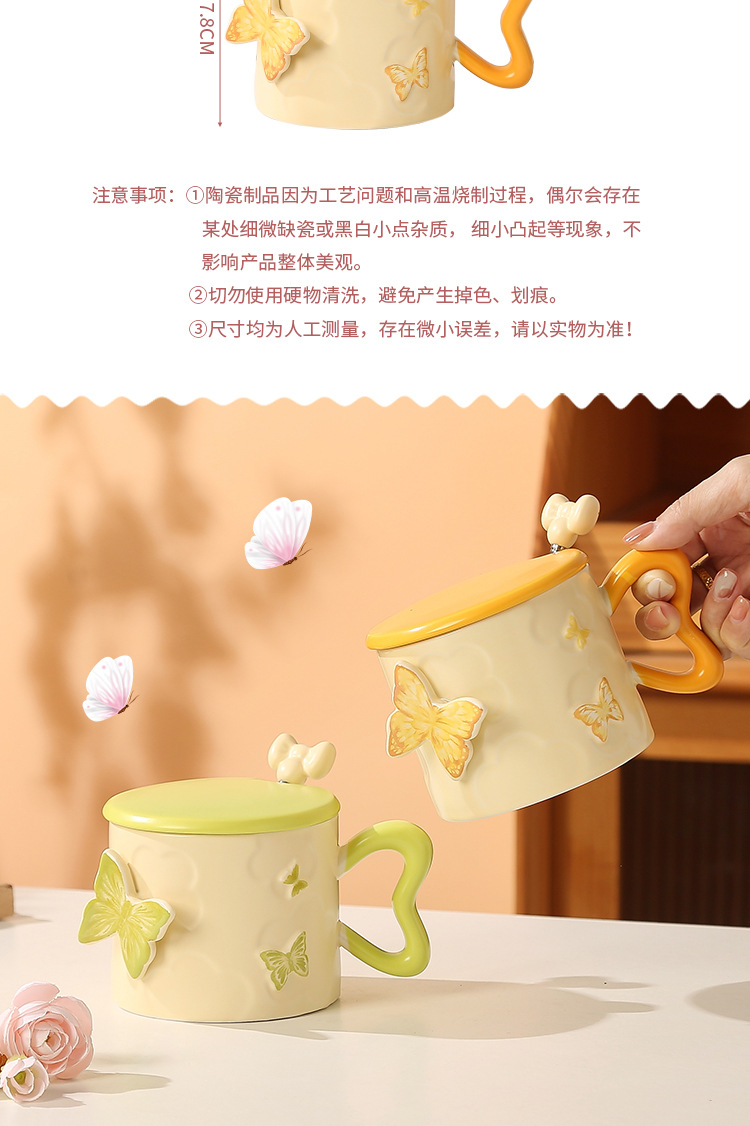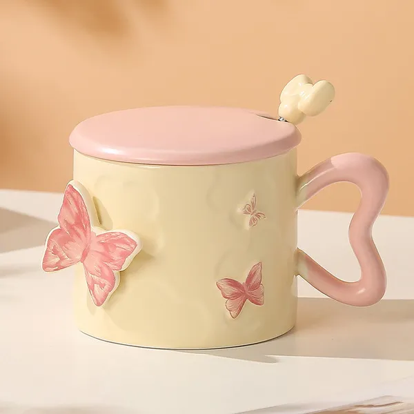 3D Butterfly Ceramic Cup with Lid & Spoon – 350ml Cute Gift Mug