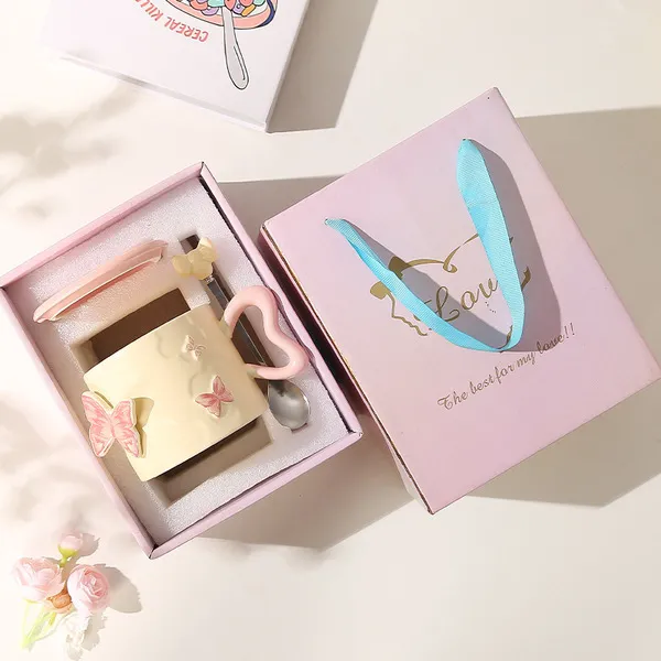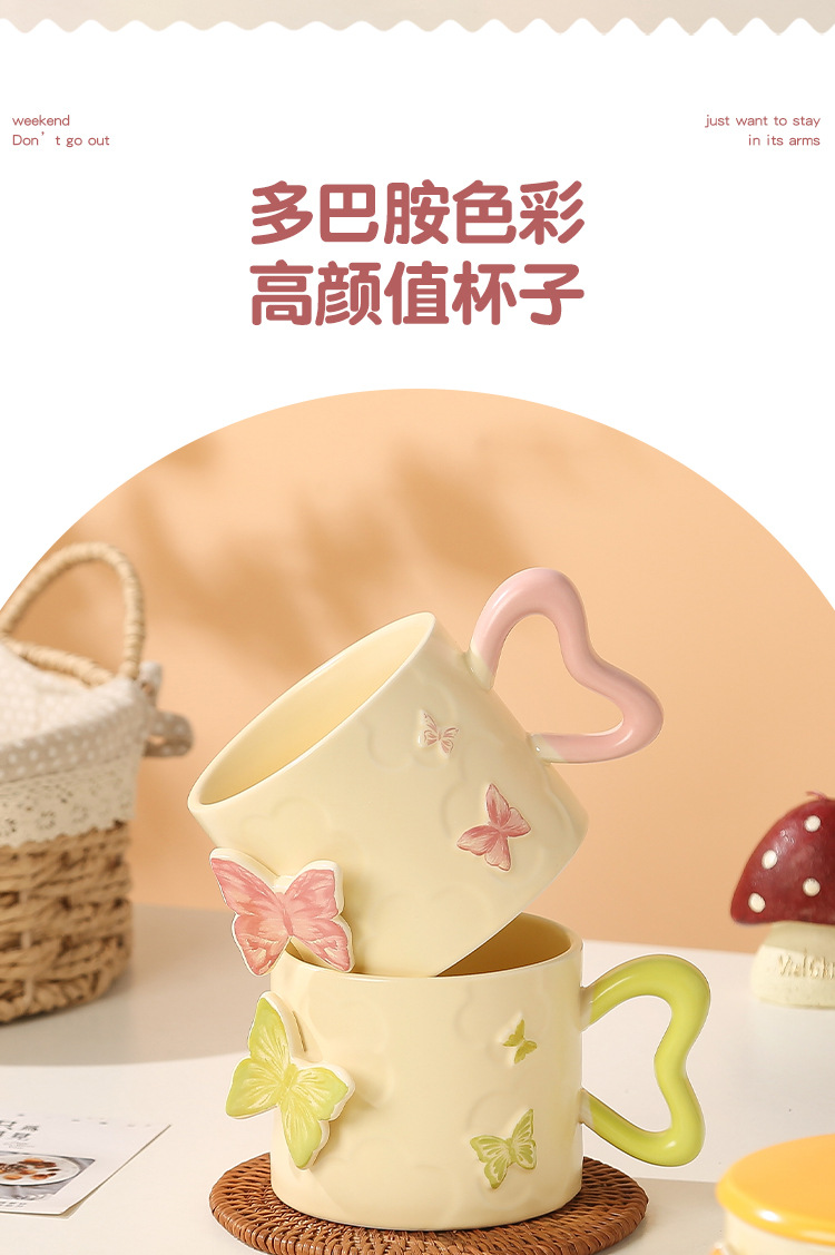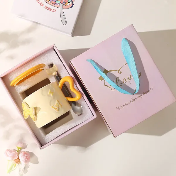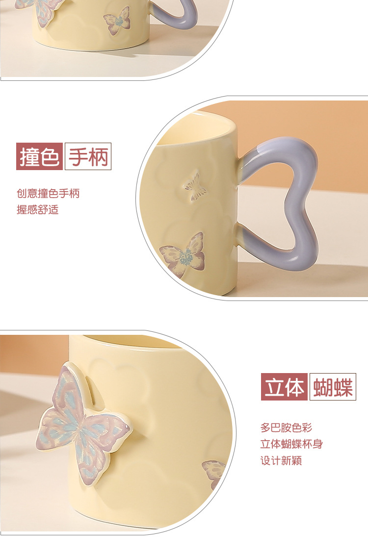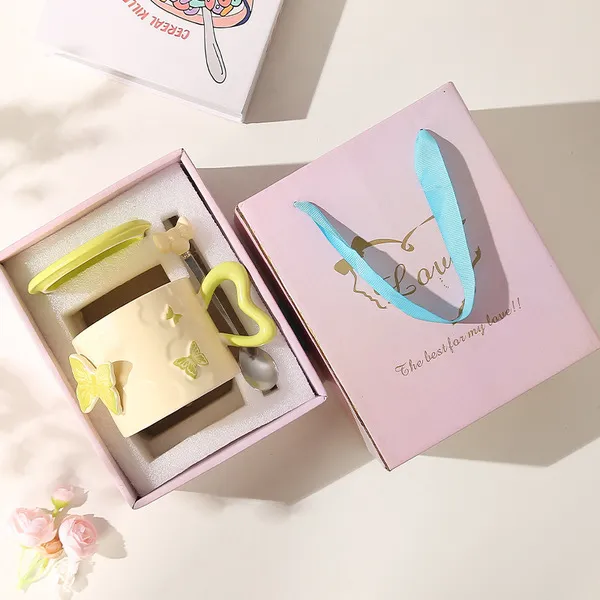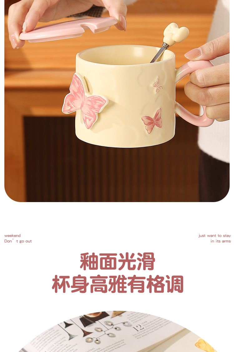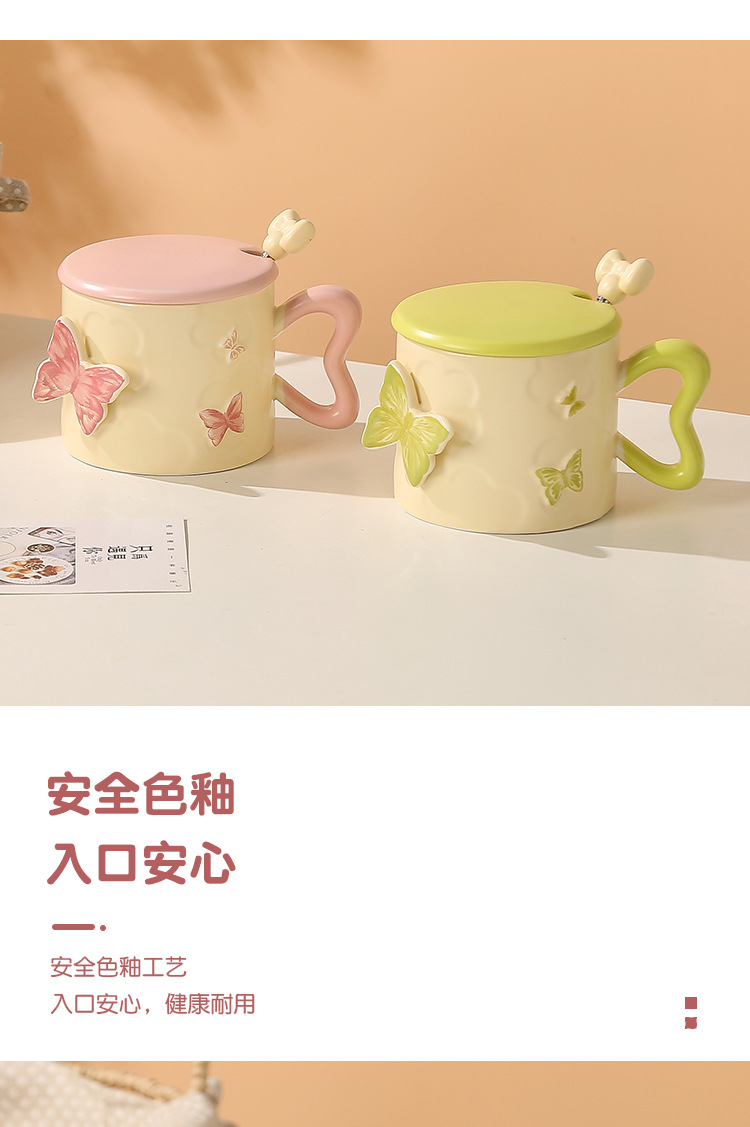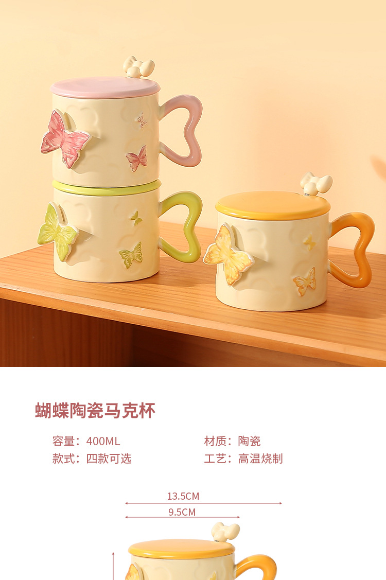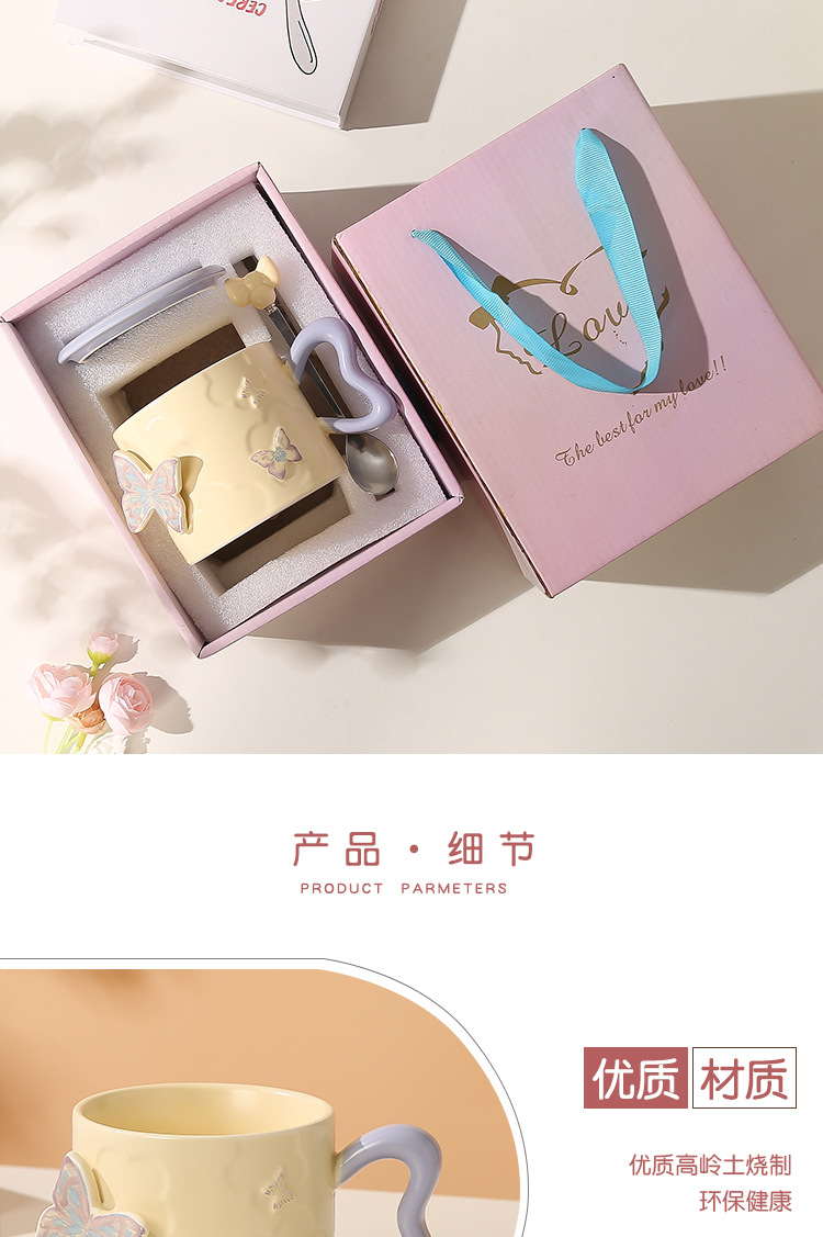 3D Butterfly Ceramic Cup with Lid & Spoon – 350ml Cute Gift Mug