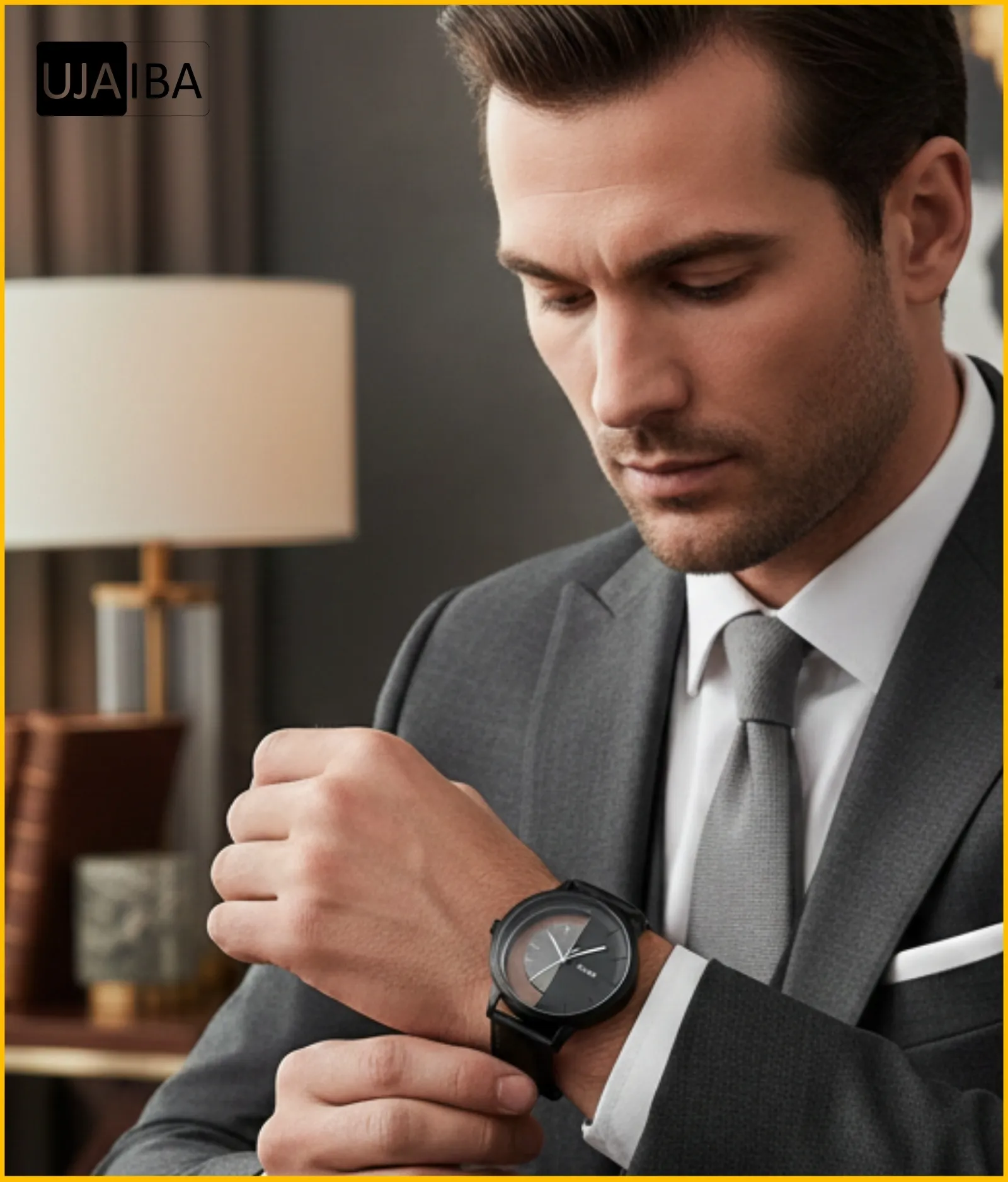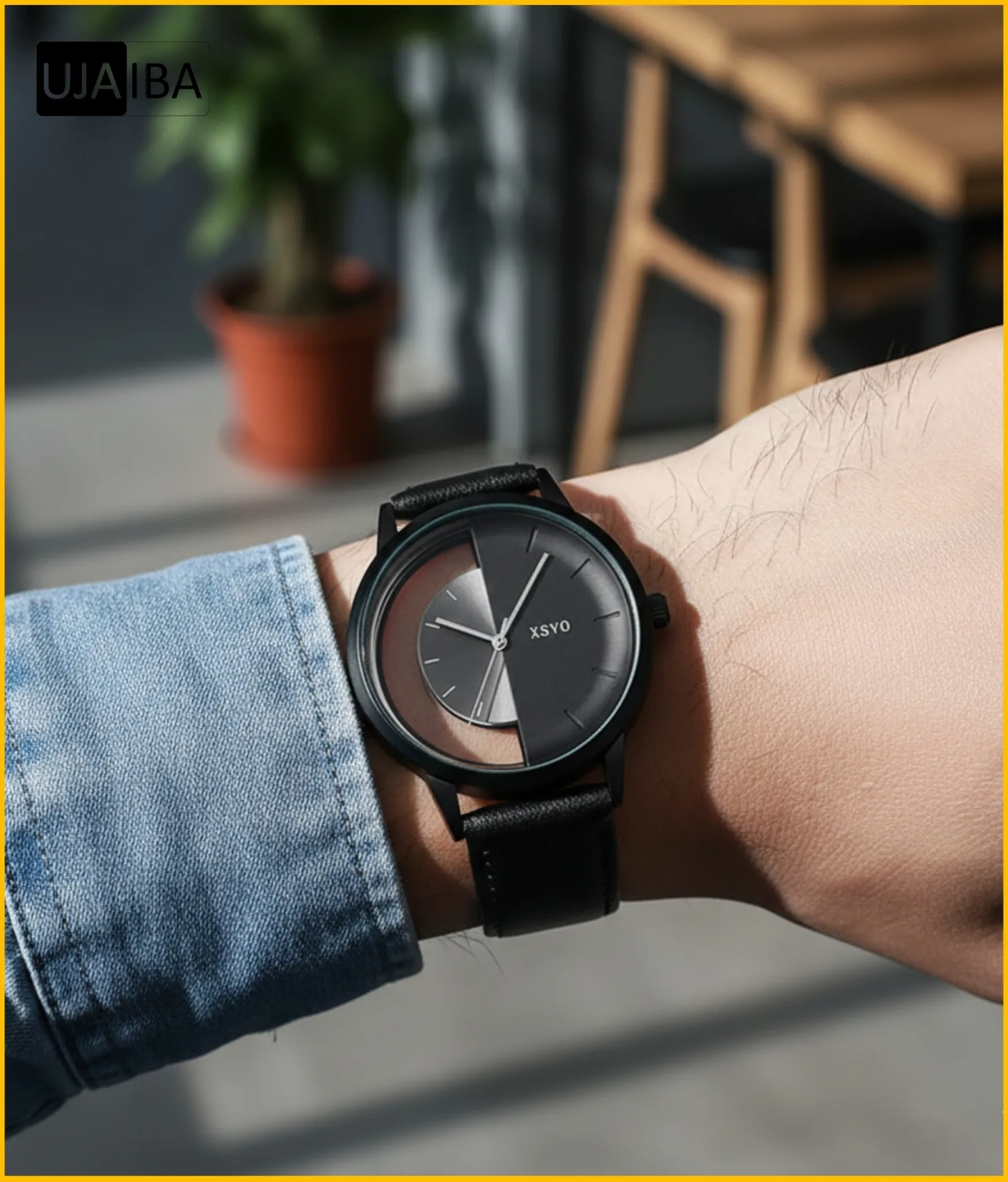 স্টাইলিশ আধুনিক পুরুষদের জন্য ডিজাইন করা হালকা ও হালফা ডিজাইনের হাফ‑Perspective ওয়াচ, যা লাক্সারি জাপানিজ স্টাইলে তৈরি এবং দৈনন্দিন ও পার্টি উভয় অনুষ্ঠানে মানানসই।