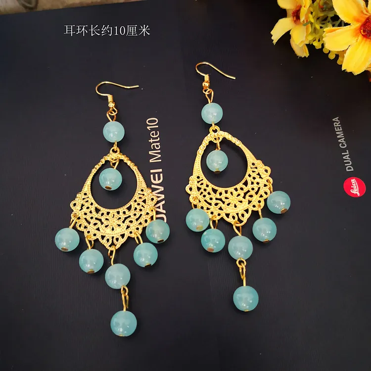 Sea-green beads on intricate gold filigree; serene & elegant. đ