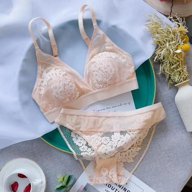 BloomLace Wireless Full-Cup Lace Bra & Brief Set