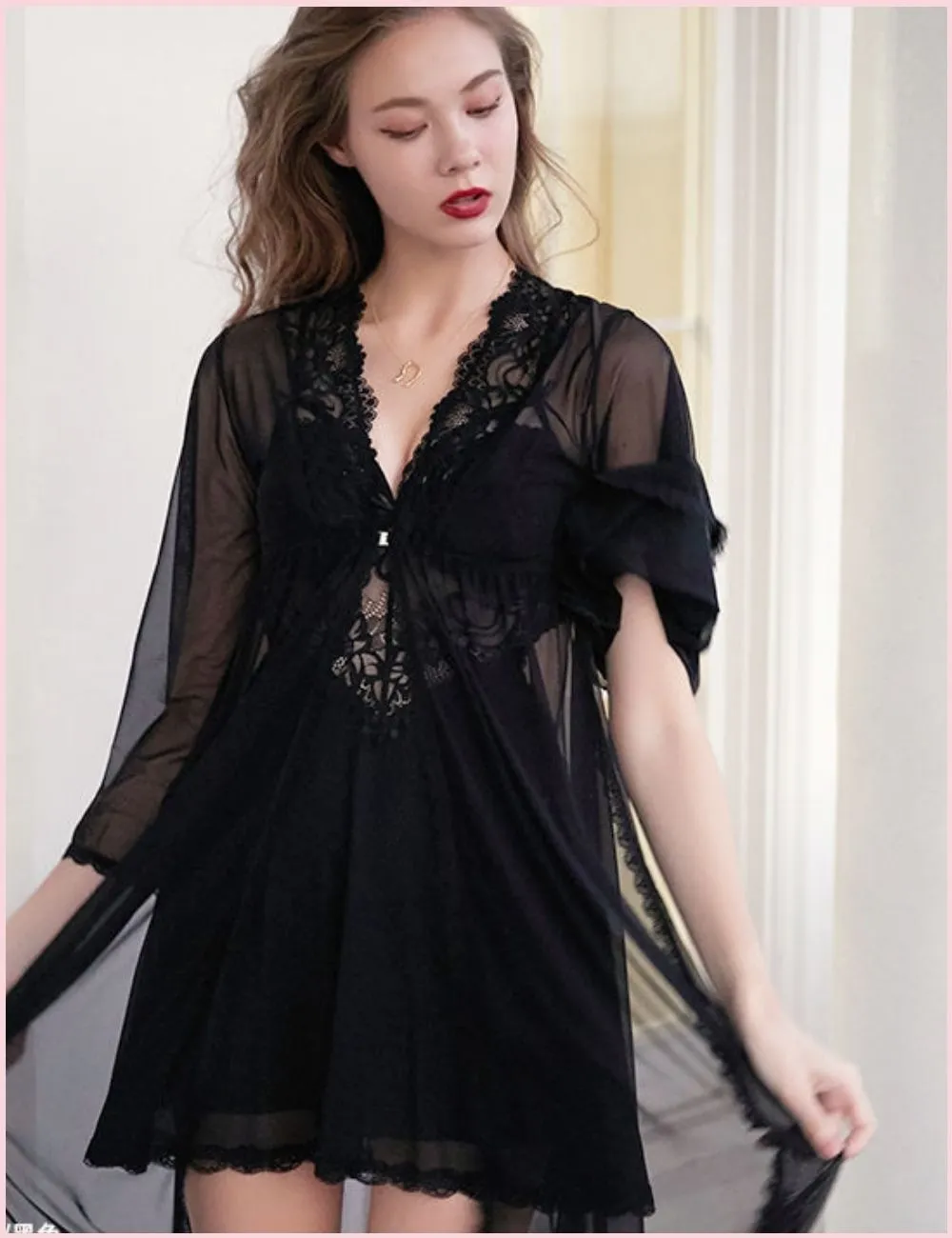 BlushSheer Long Mesh Nightwear Set
