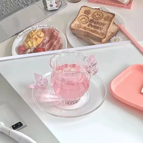 Butterfly Design Heat-Resistant Glass Cup & Plate Set