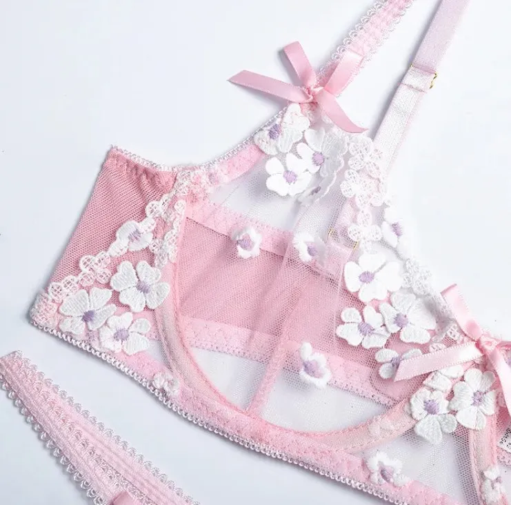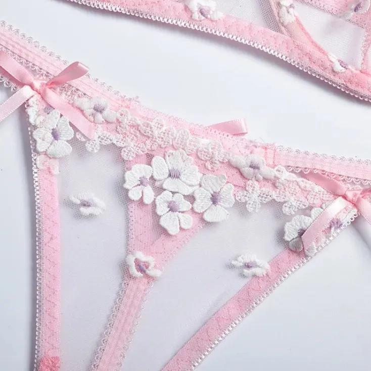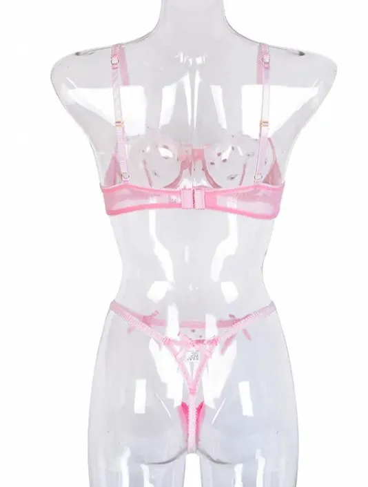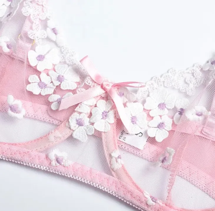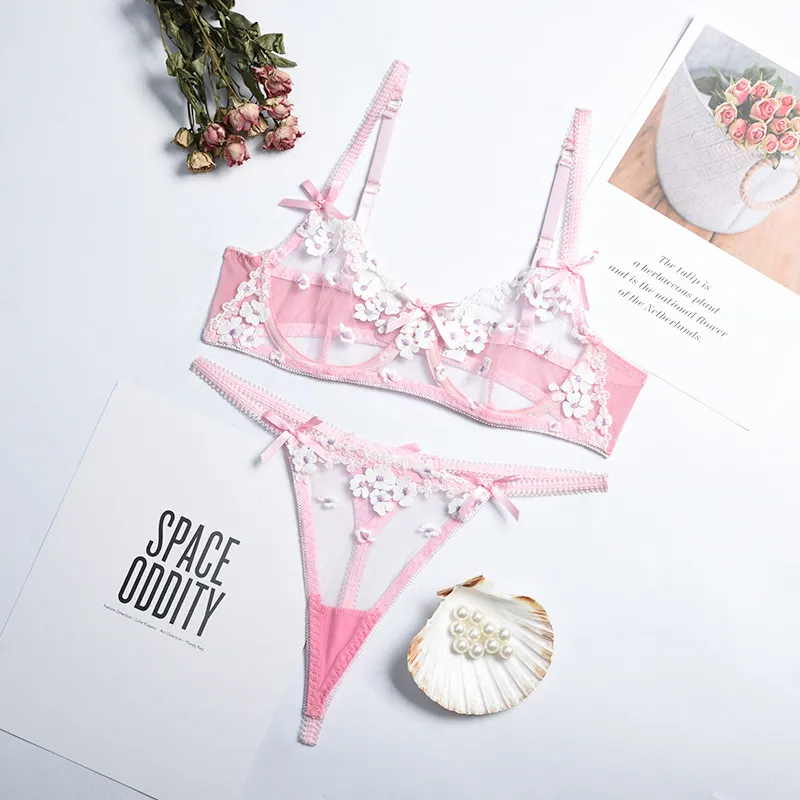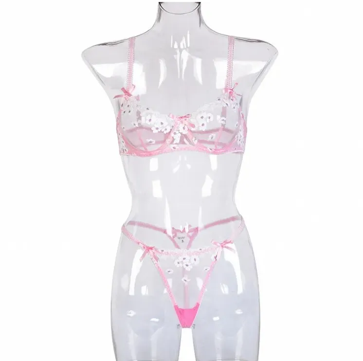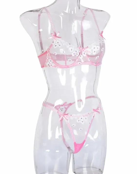 ColorVibe Embroidered Transparent Mesh Bra Set