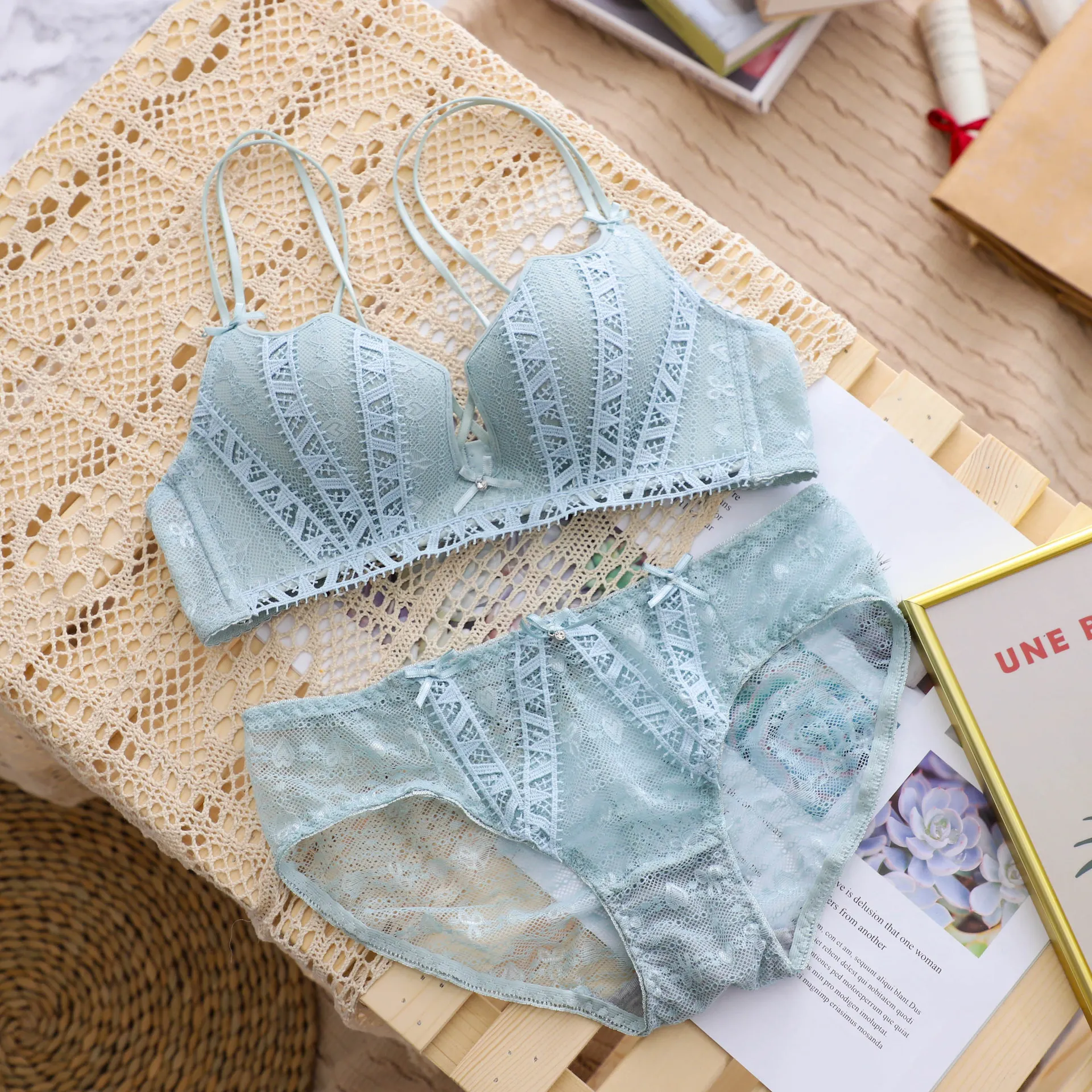 Shape comfort with the UJAIBA CrossBloom Set – a wireless lace bra and panty duo designed for bust-lift support, anti-side spillage control, and seamless innerwear elegance.