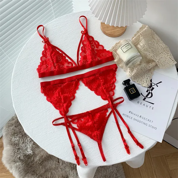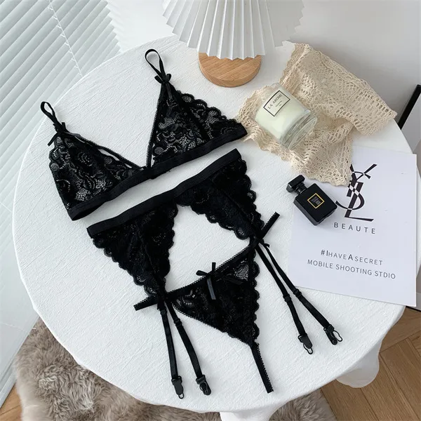 DrapeLuxe 3-Piece Transparent Lace Lingerie Set