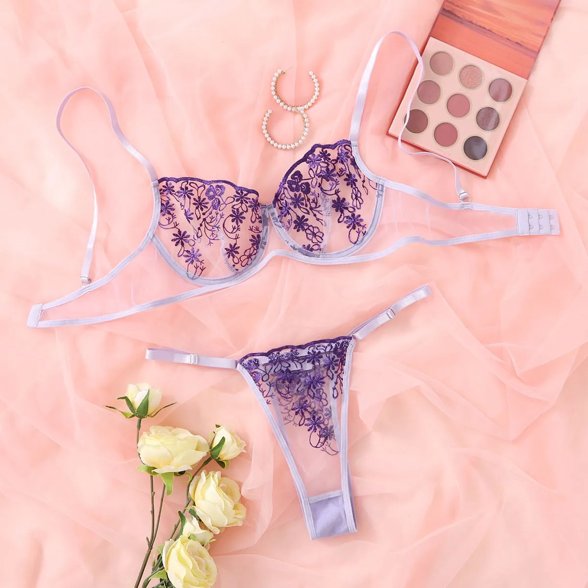 LaceMuse Exotic Transparent Embroidered Lingerie Set