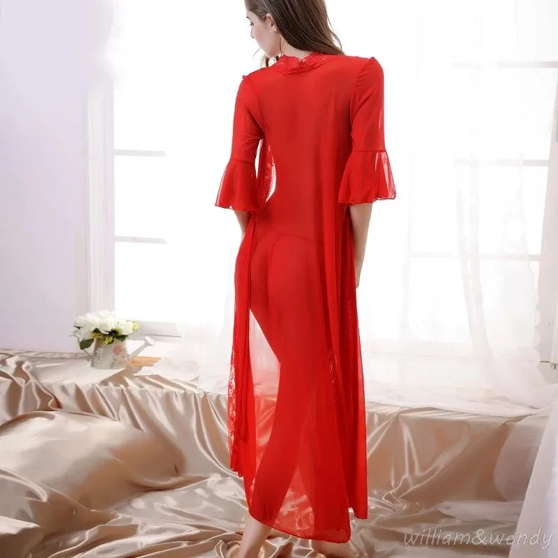The UJAIBA MeshMuse Nightdress is designed for those who want grace and boldness in one. Featuring a halter-style neckline, see-through mesh fabric, and long skirt with elegant tassel details, it creates an effortlessly alluring look. The lightweight brocade net fabric hugs the body gently while maintaining breathability. Ideal for bridal nights, roleplay, or self-indulgent evenings, MeshMuse is a romantic staple in the UJAIBA nightwear lineup.
