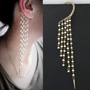 Non-pierced ear hook design with cascading pearl chains & golden spike tip. đ¤â¨