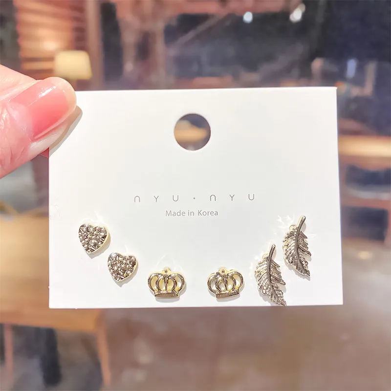 Heart, Crown & Leaf design set — classy and graceful in gold tone. 👑🍃