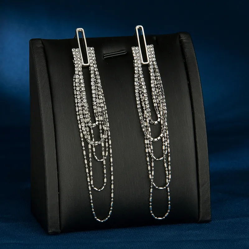 Same layered glam in silver tone; modern statement for evening wear. ✨