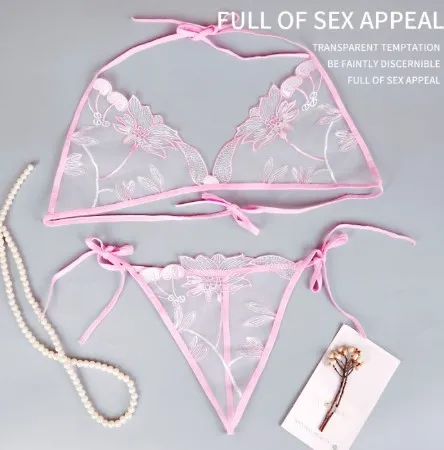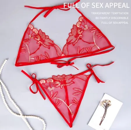Turn up the heat with the UJAIBA ValenSheer Set – a red transparent lace bra and panty duo designed with bold embroidery, adjustable straps, and seductive sheer detail.