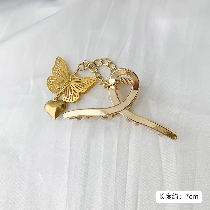 Golden heart and butterfly charm hair clip â stylish, minimal, and perfect for effortless elegance.