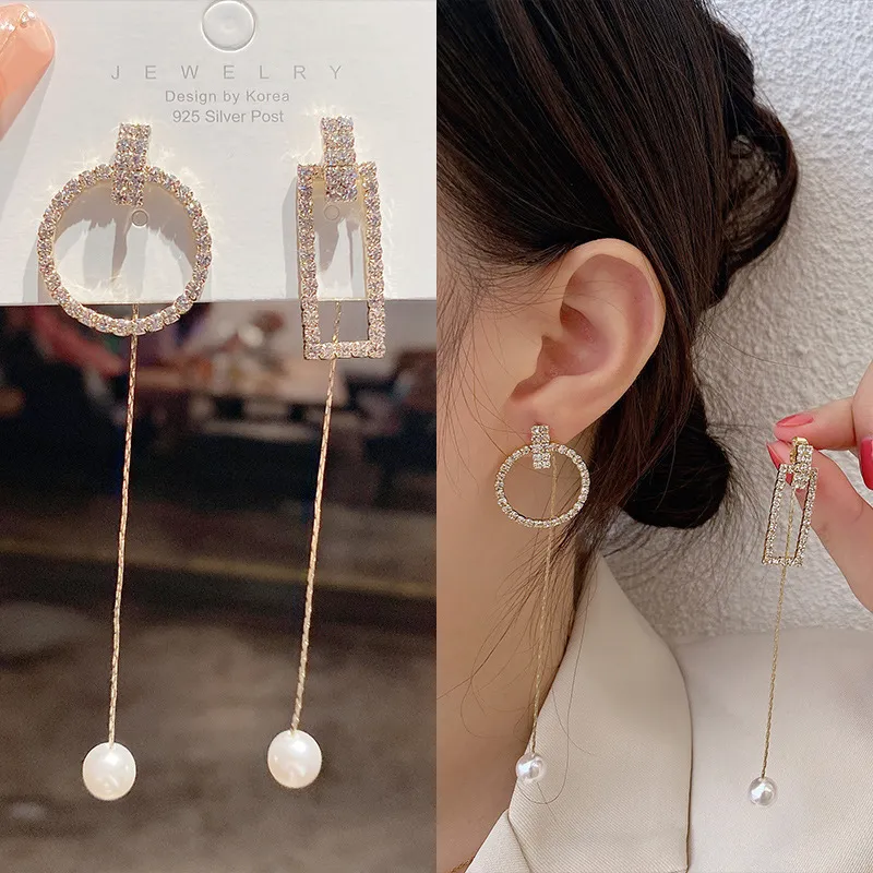 Geometric rectangle-ring combo with pearl drop ends — artistic & luxe. 🤍