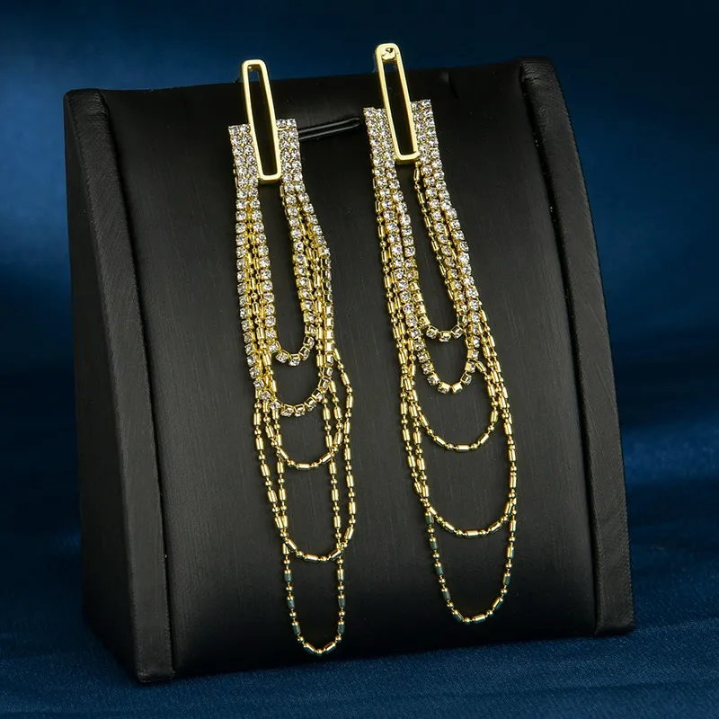 Layered golden chains with crystal sparkle; bold & luxurious. đĢ