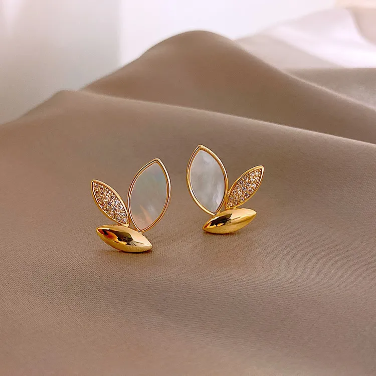 Minimalist marquise-cut leaves blending crystal & pearl shine.