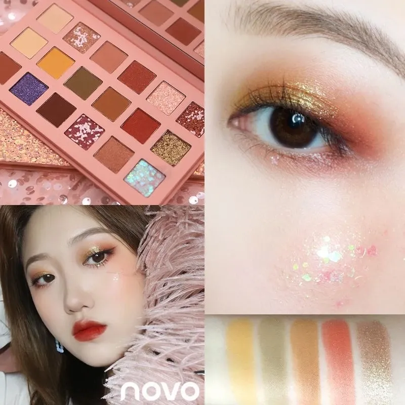 Create stunning eye looks with the NOVO Desert Rose Eyeshadow Palette, featuring matte and pearlescent tones perfect for students, beginners, and everyday beauty.