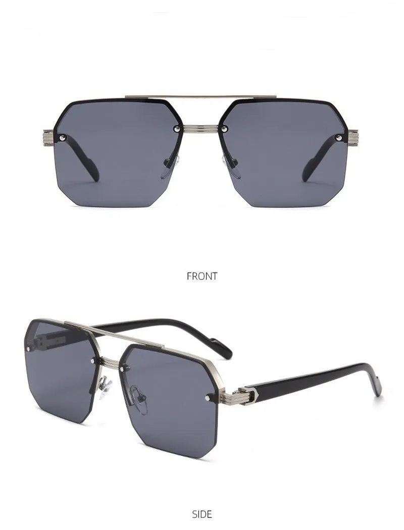 Trendy Half‑Frame UV400 Sunglasses – Big Face Driving & Party Eyewear