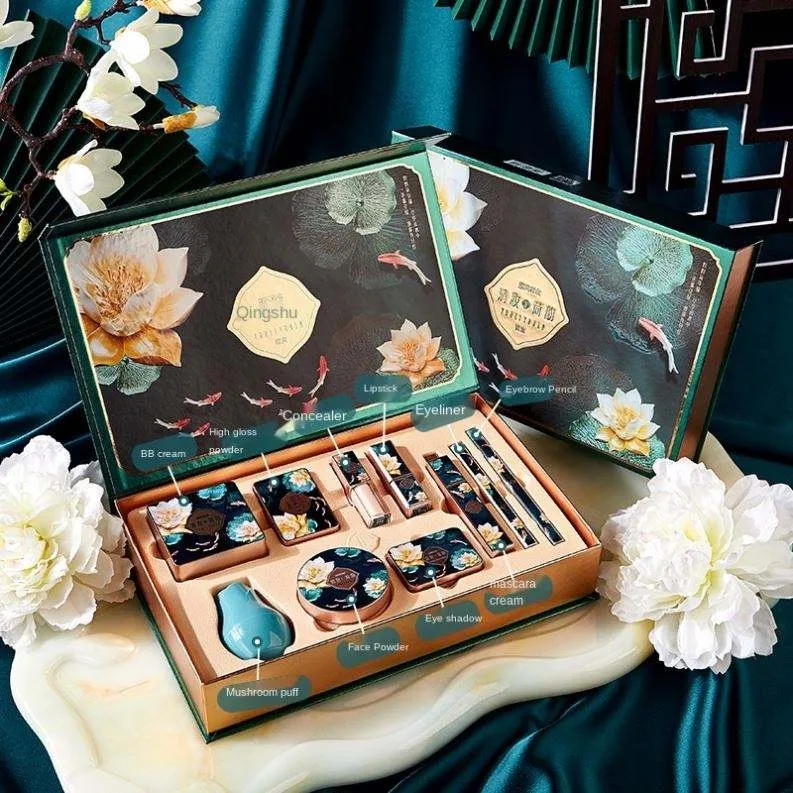 A complete beauty kit featuring eyeshadows, eyeliners, lip glosses, and blush — everything you need for a flawless makeup look in one compact set.
